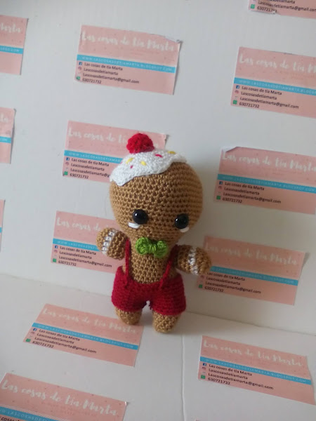 En esta ocasión el diseño es de PHILOMENA_amigurumis, nos lo presenta así: "cuenta la leyenda que había una vez una anciana que nunca pudo tener hijos y un día cerca de Navidad decidió hornear una galleta de jengibre con forma de niño, le hizo brazos, piernas, cabeza y la decoró con dulces y glaseado. Al abrir la puerta del horno se dió cuenta que ella había cobrado vida".