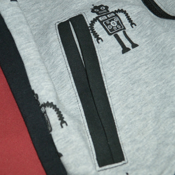 En esta versión he cambiado los bolsillos y en lugar de plastón los he hecho como en la Kleinbus pero sin cremallera, y esta vez no ha sido por pereza de ponerla, es que no me gusta meter la mano en bolsillos con cremallera y al peque pues tampoco se las pongo. Total pierdo las cosas igual jejeje