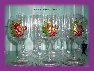 Voy a recuperar esta entrada que hice casi al comienzo de empezar mi andadura por estos mundos virtuales. Como ahora ando metida con el cristal me ha parecido interesante mostraros este conjunto que hice y que tanto uso estoy dando. Las copas son simples, las compre en Ikea y son muy baratitas. Merece la pena el trabajo porque el resultado final es precioso...espero que os guste!!