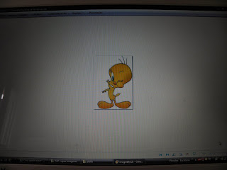 6º.- Ponemos un folio enla pantalla, mejor si es blanco y no muy gordo, o papel seda y calcamos la imágen.