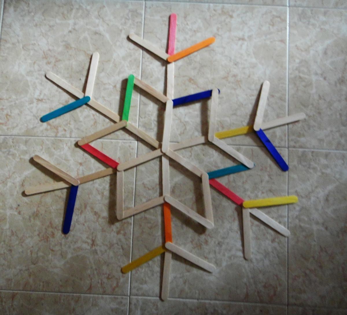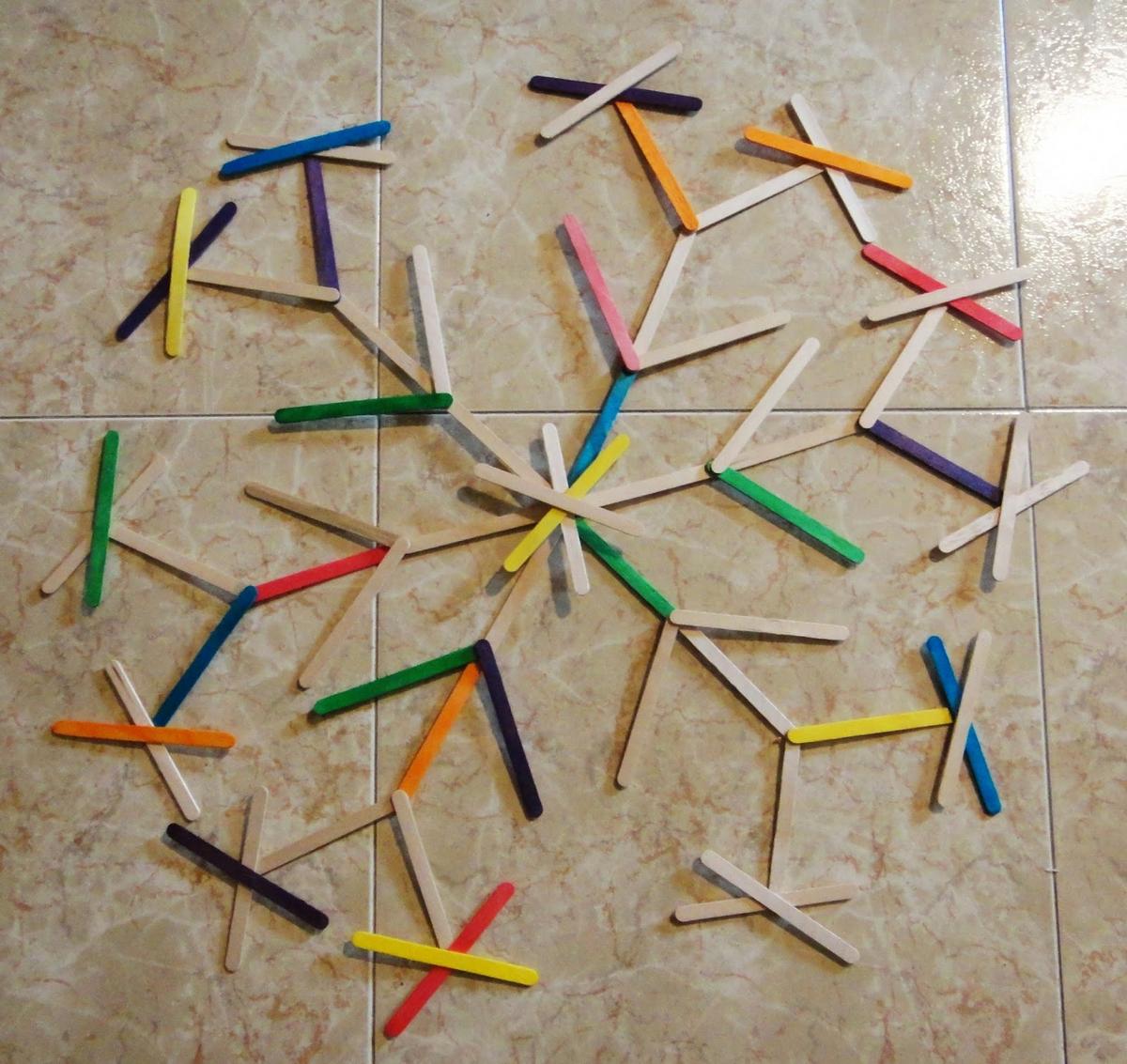 -Palos de helado y/o palos de médico (depresores). Tened en cuenta que estos últimos son más anchos y largos, con lo cual el copo os quedará más grande en proporción.