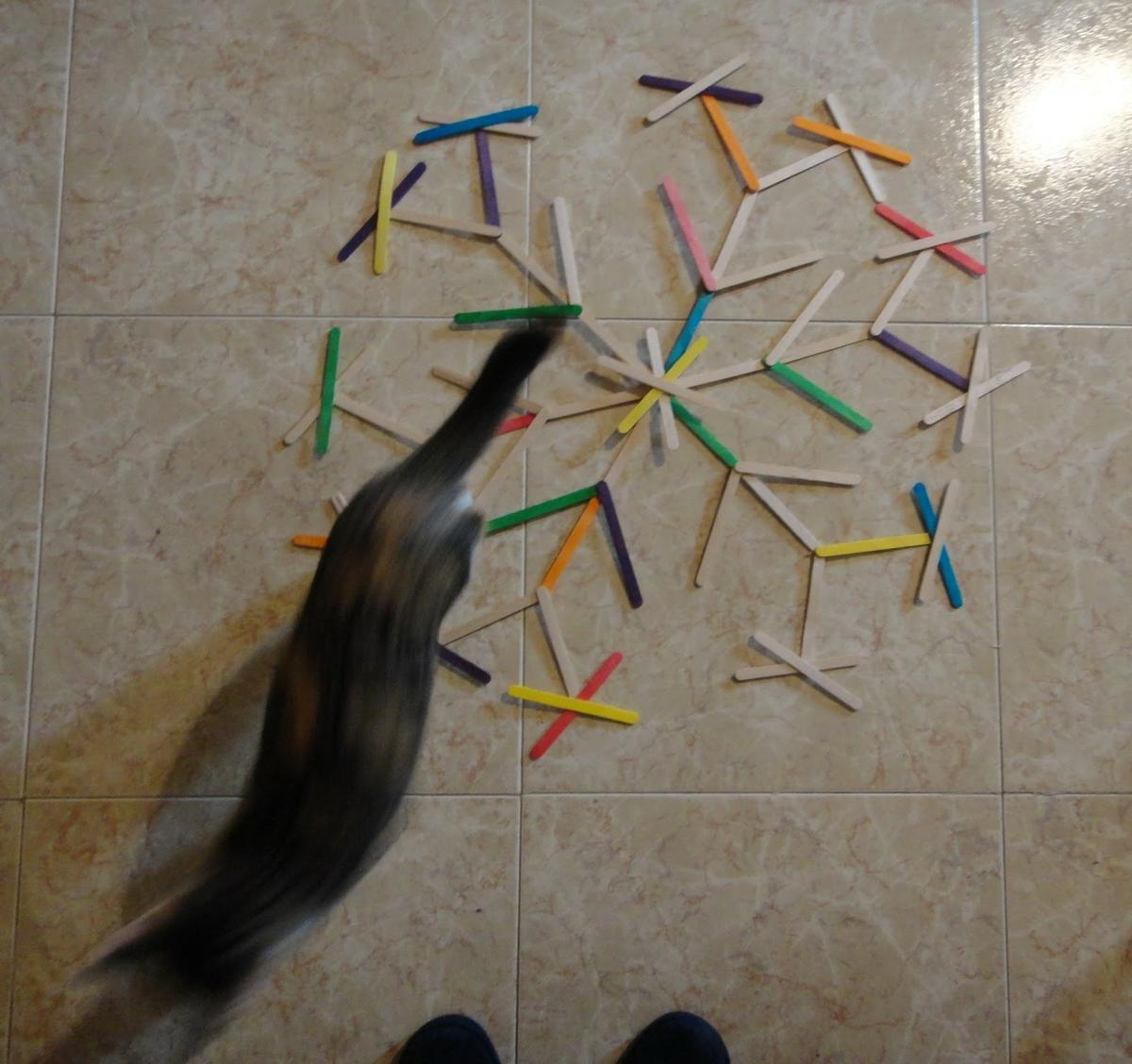 Como algunos de mis palos vienen pintados de colores, creo que voy a dejarlos así y no recargar más la decoración. Pero si solo tenéis palos en color natural, podéis hacer decoraciones divertidas: pìntarlos todos de un mismo color, poner purpurina, pegar botones... La imaginación es libre.