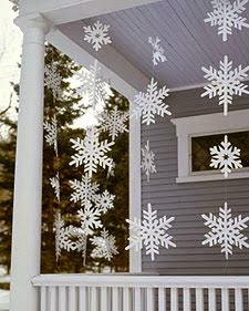 Mira que lindo se ven los copos de nieve colgados en la entrada de casa también podemos hacer una gran guirnalda para decorar las ventanas