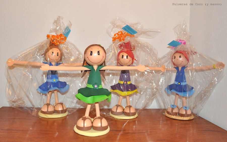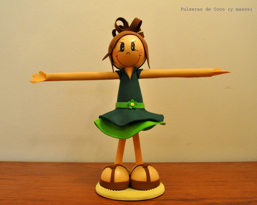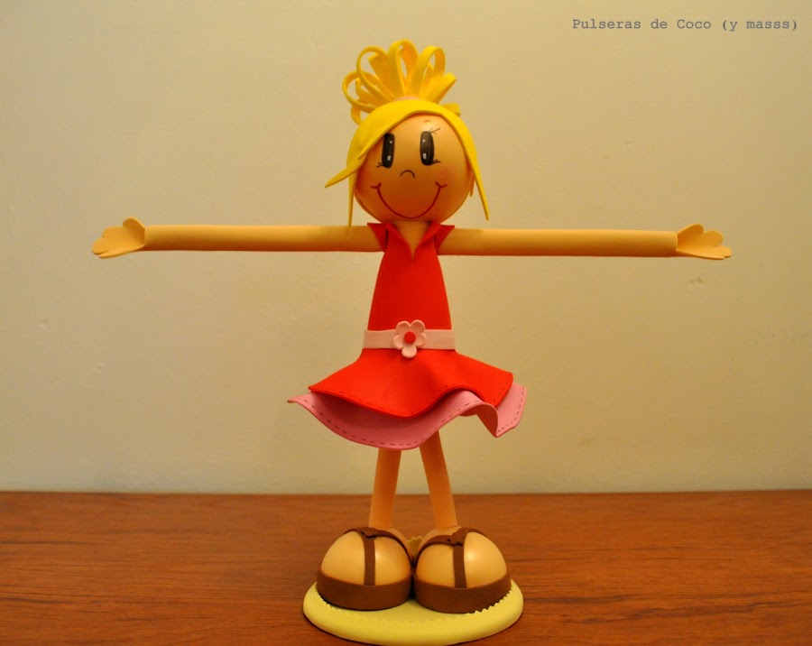 Ya habeis visto en el blog algunas de nuestras fofuchas, pero aún no os habiamos mostrado a la princesa de la casa. Se trata de Coquita. Una versión de la fofucha clásica pero pensando en todos los abalorios la hemos hecho con los brazos más largos y firmes, para que podais colgar vuestras pulseras.
