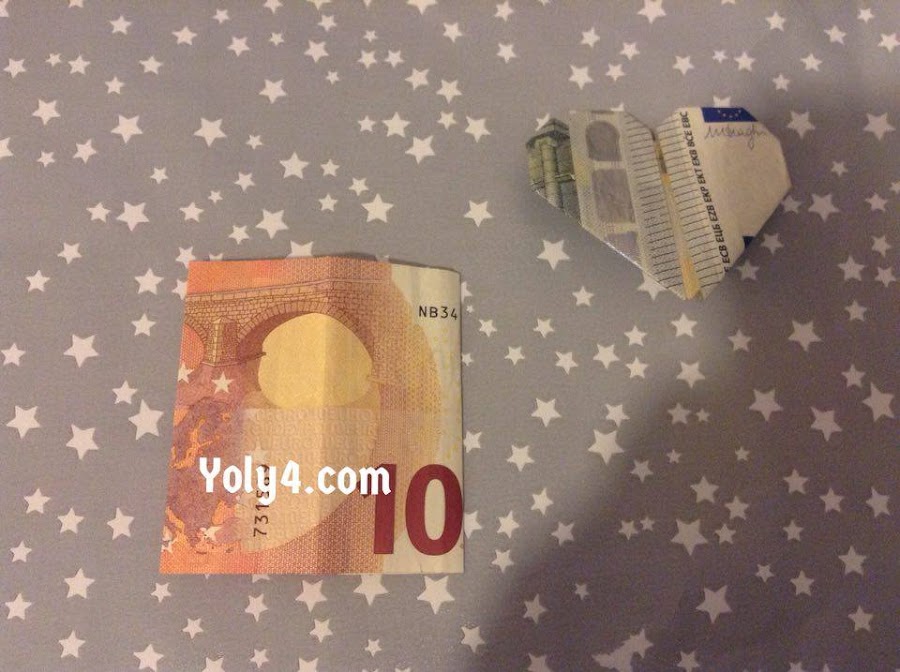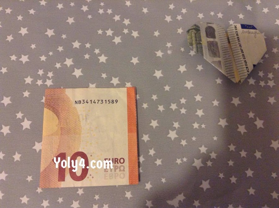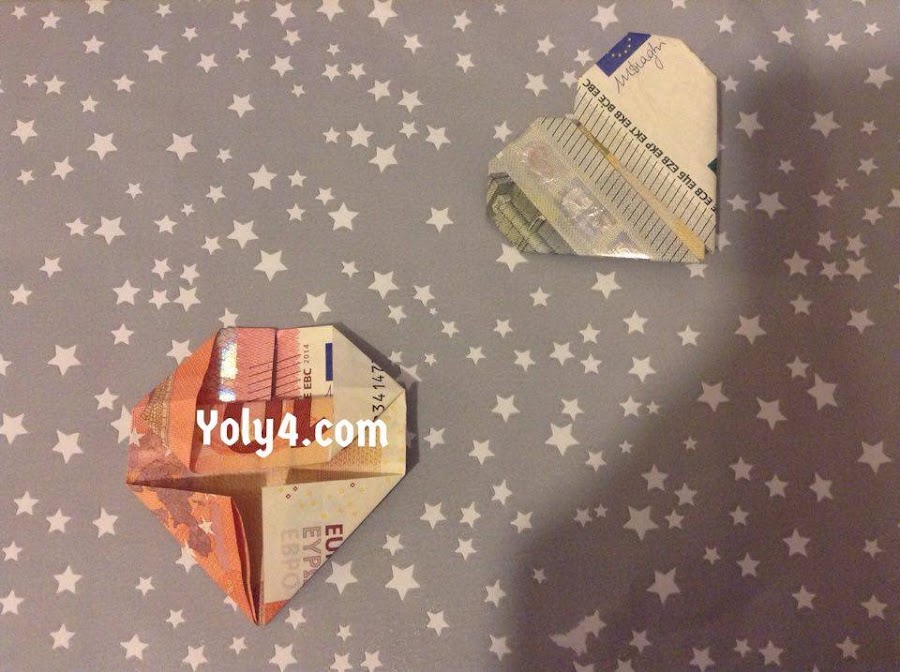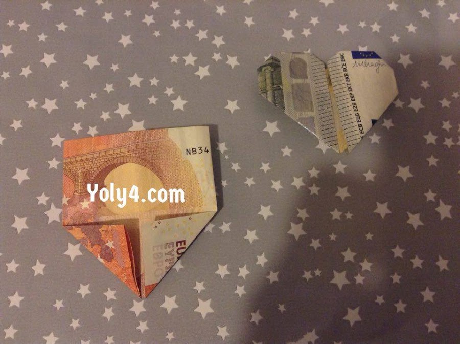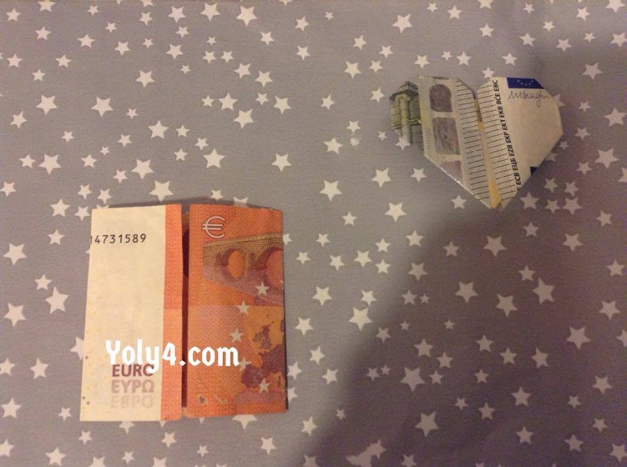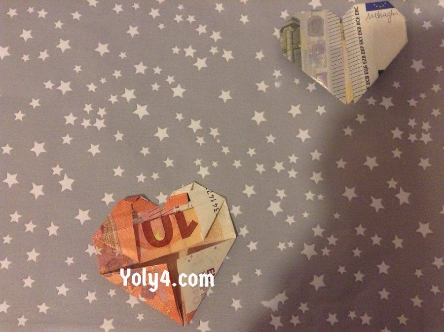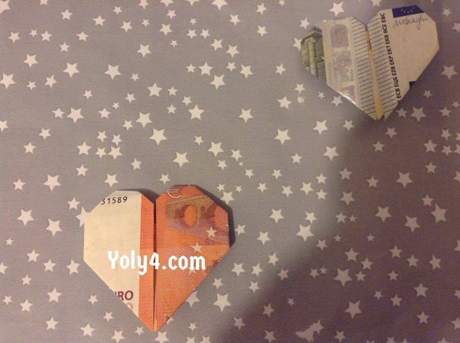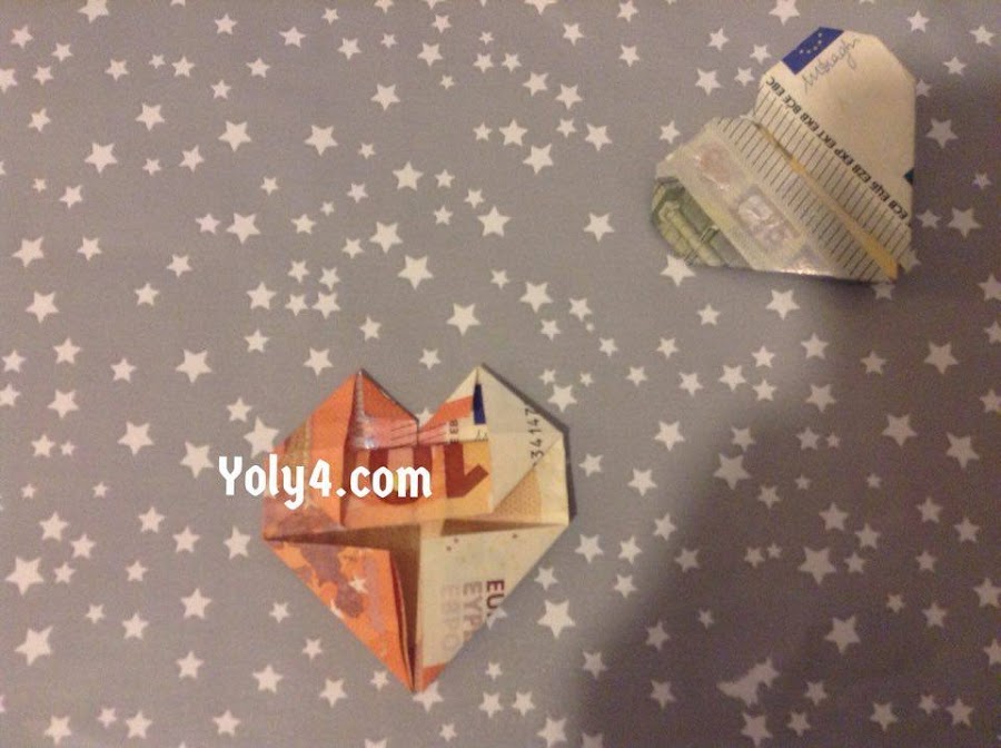 Y ya tenemos nuestro billete en forma de corazón, lo podemos poner en una tarjeta regalo.