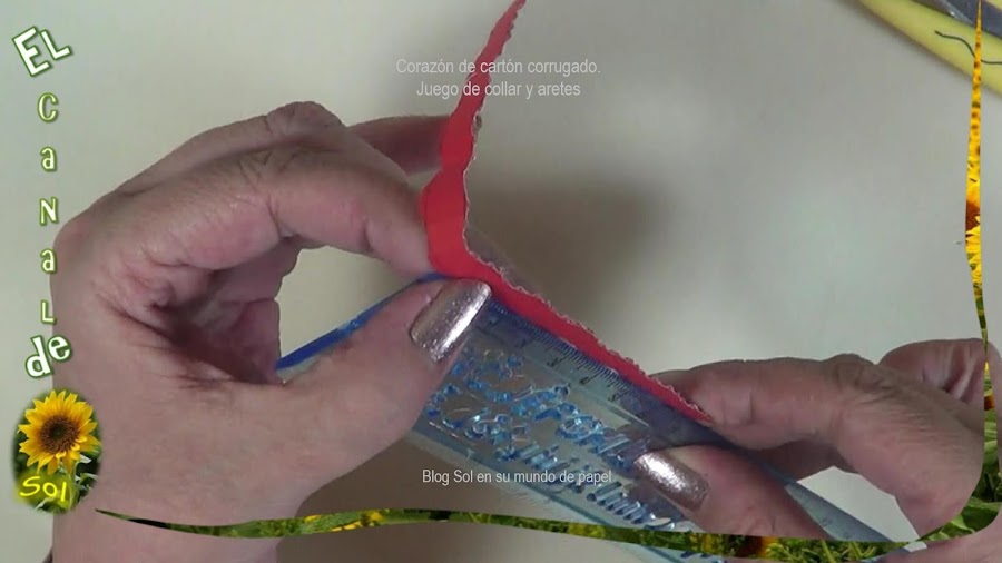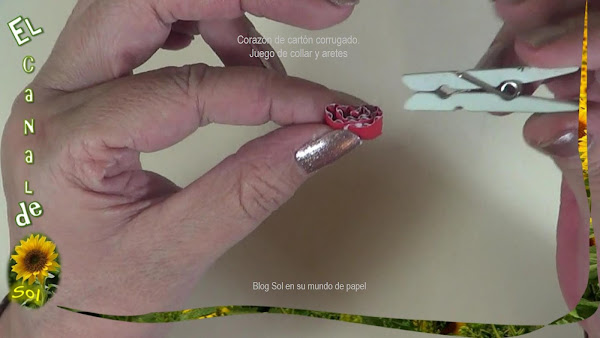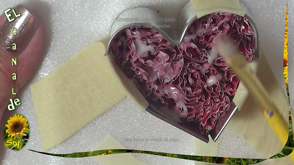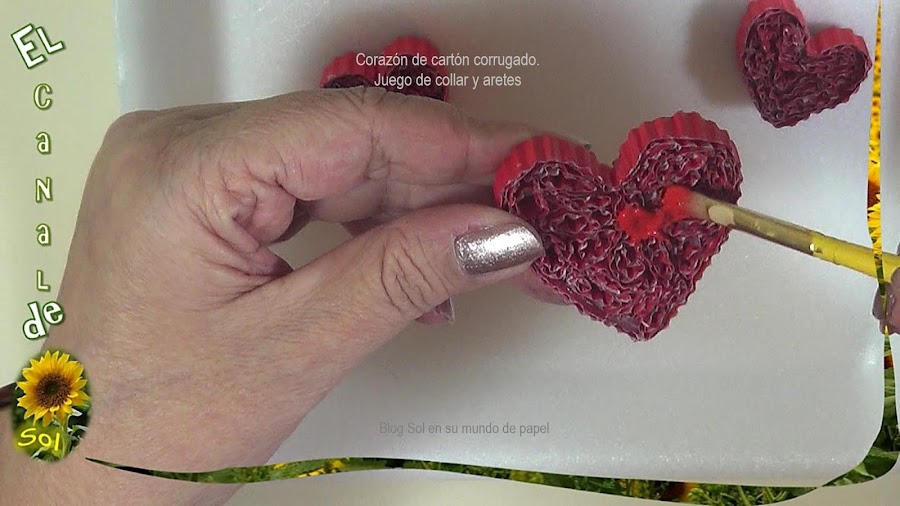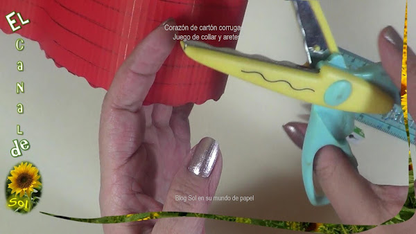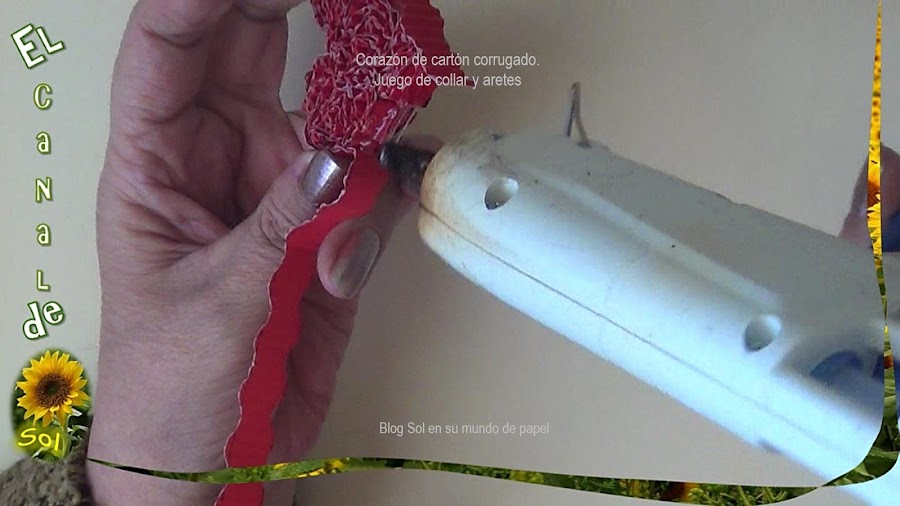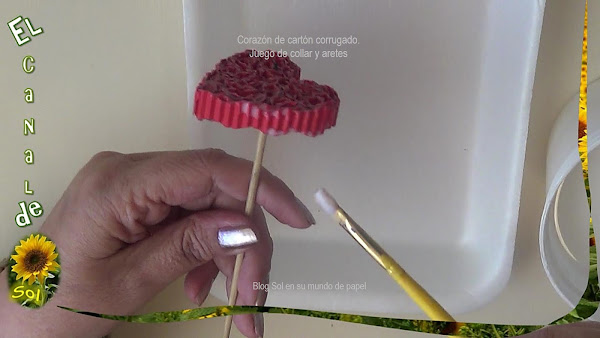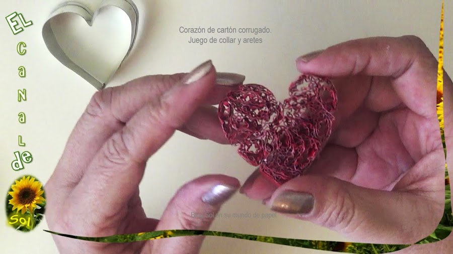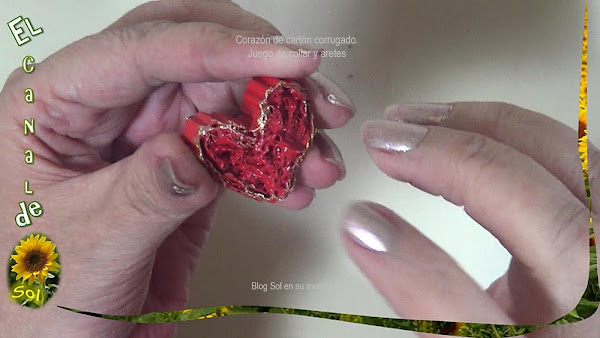 Una vez todo seco, sacamos el corazón y le damos dos vueltas con otra tira de cartón, dejando la parte ondulada para fuera