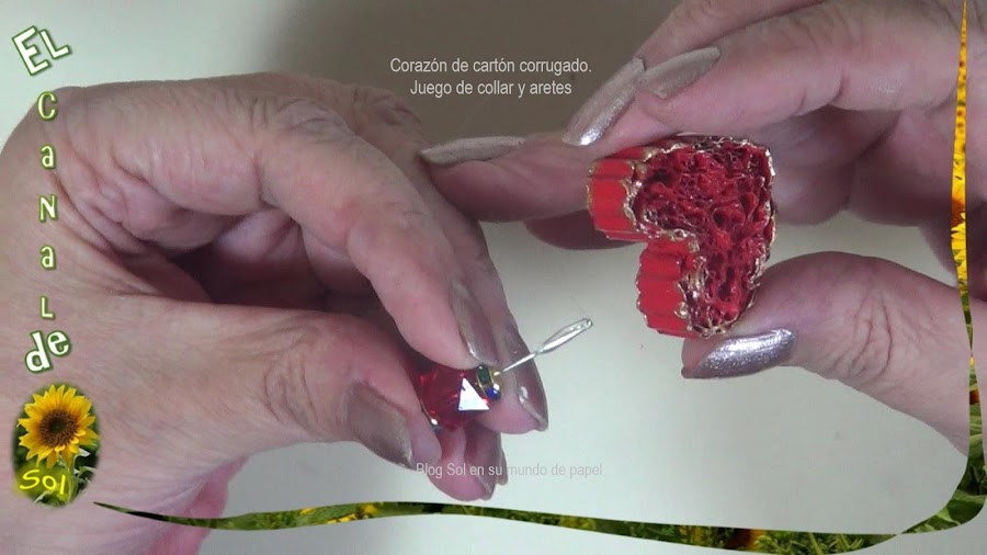 Agregamos los ganchos a los aretes y la cadena al dije y listo