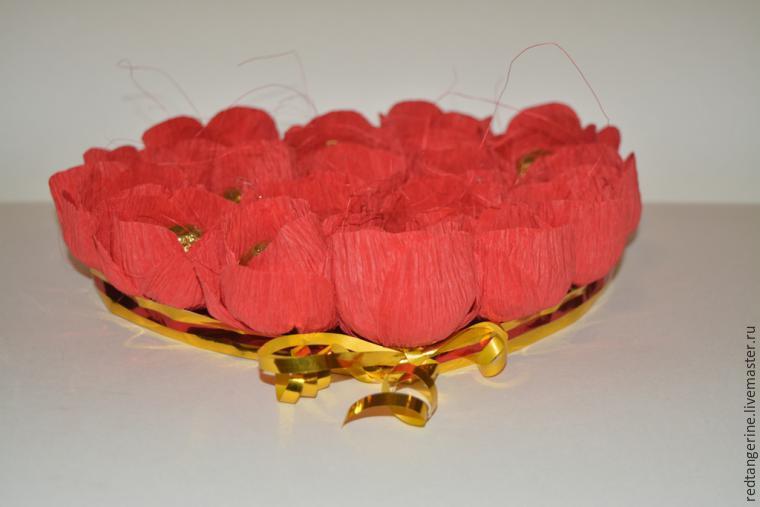 Rellenamos todo el espacio de nuestro corazón de cartón con rosas y bombones.