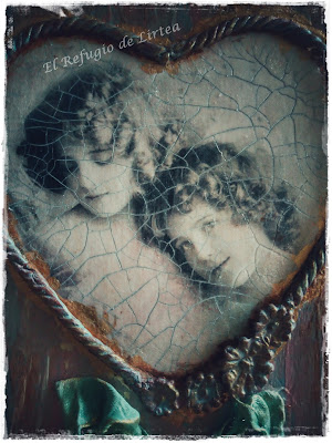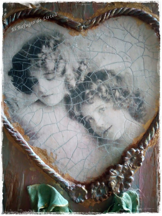 La imagen es impresa, la recorto y pego sobre ese corazón pintado de blanco, ya sabéis como hacer el decoupage con imágenes impresas, con servilletas o papel de arroz y si sois nuevas en este blog os remito a las tutoriales donde os explico como hacerlo, aquí .
