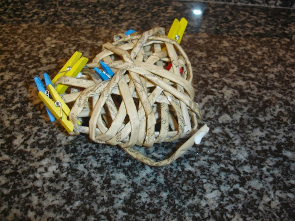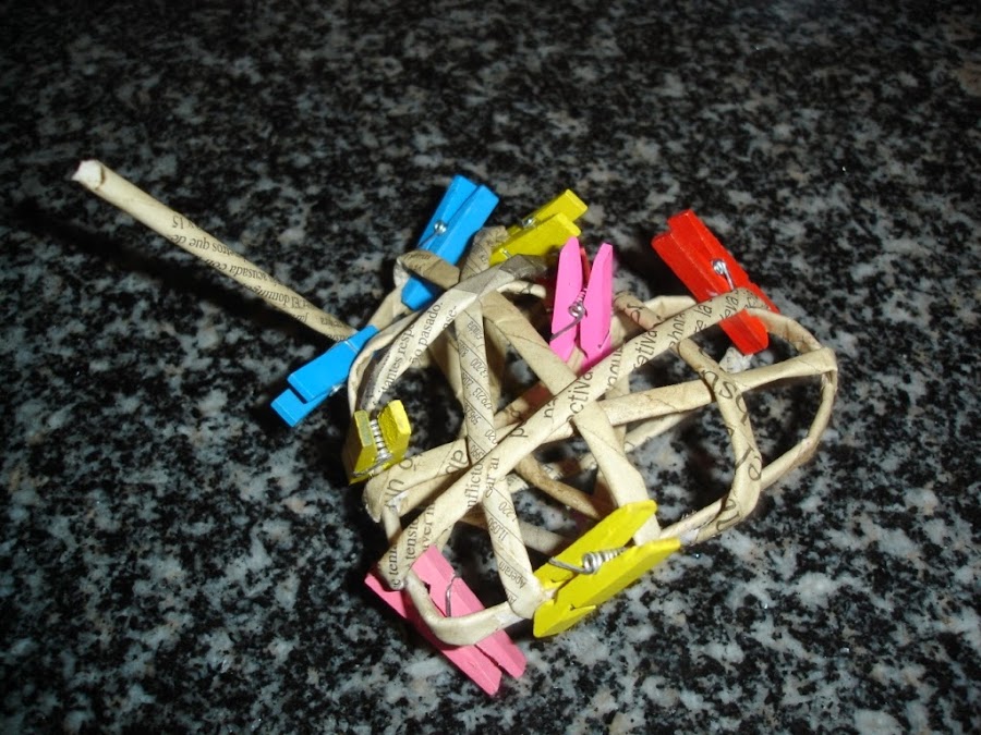 Cuando ya me gustó la forma que había cogido pegué el extremo del último rollito por debajo de otro para que no se viera.