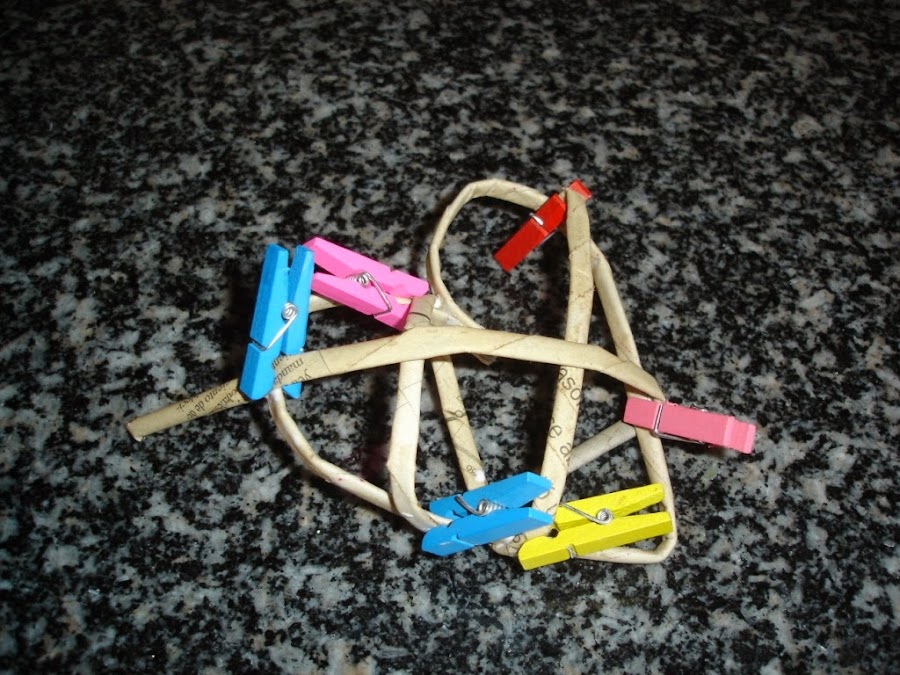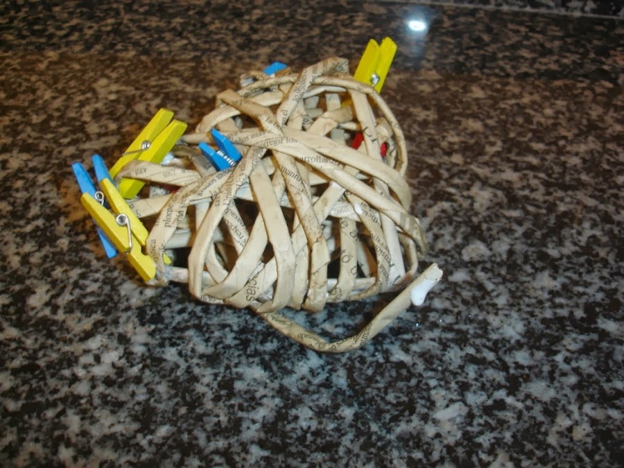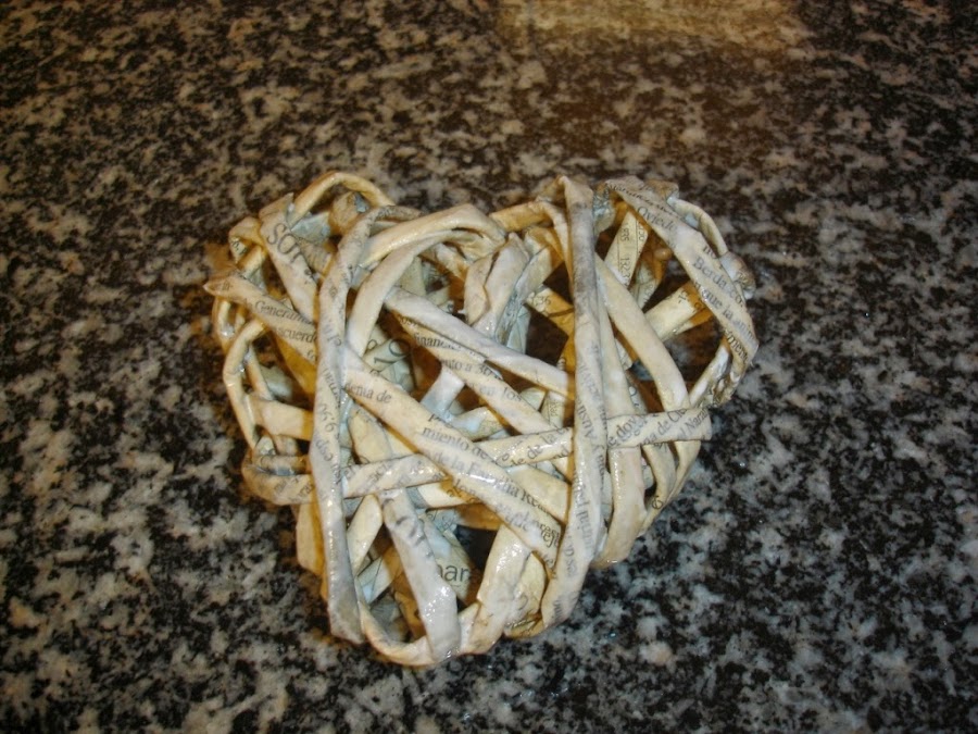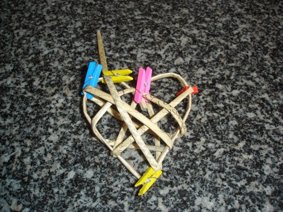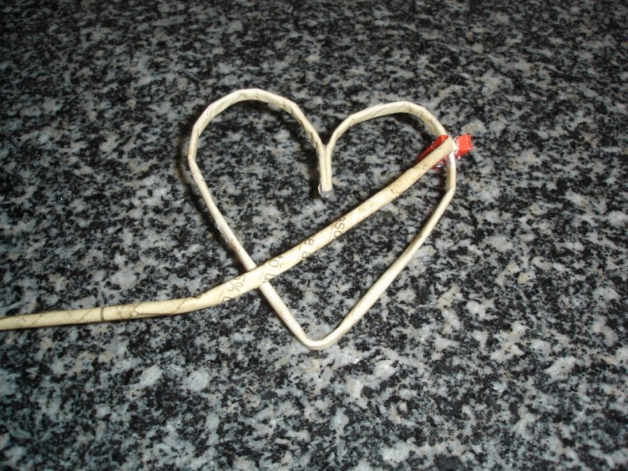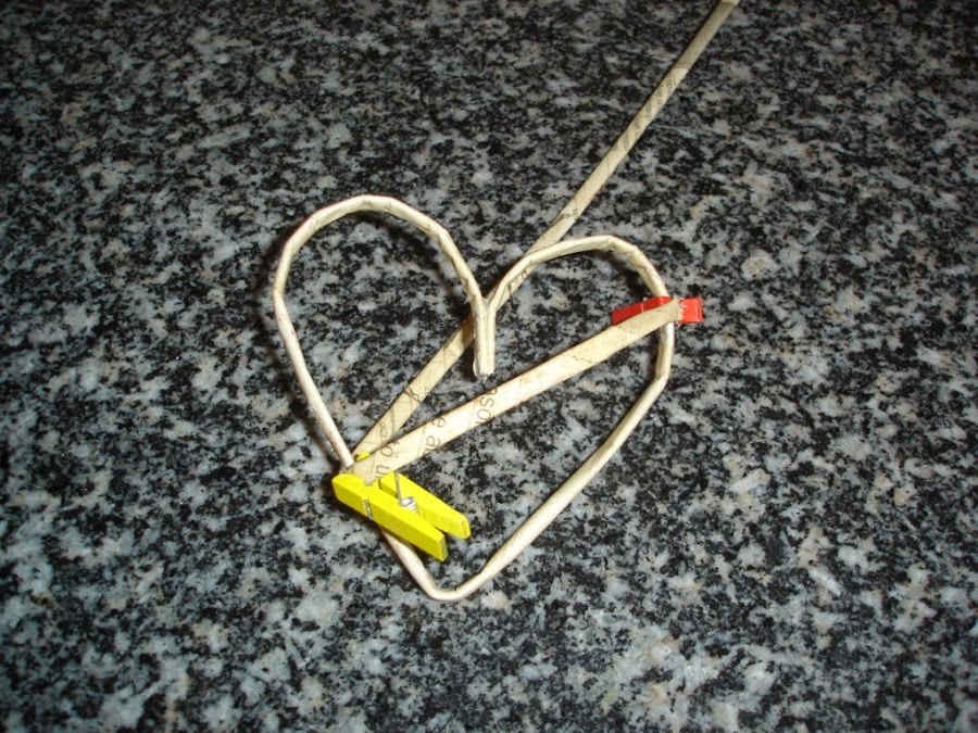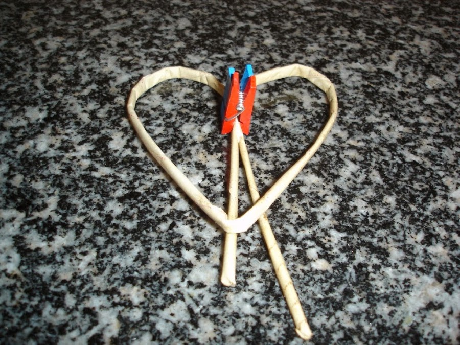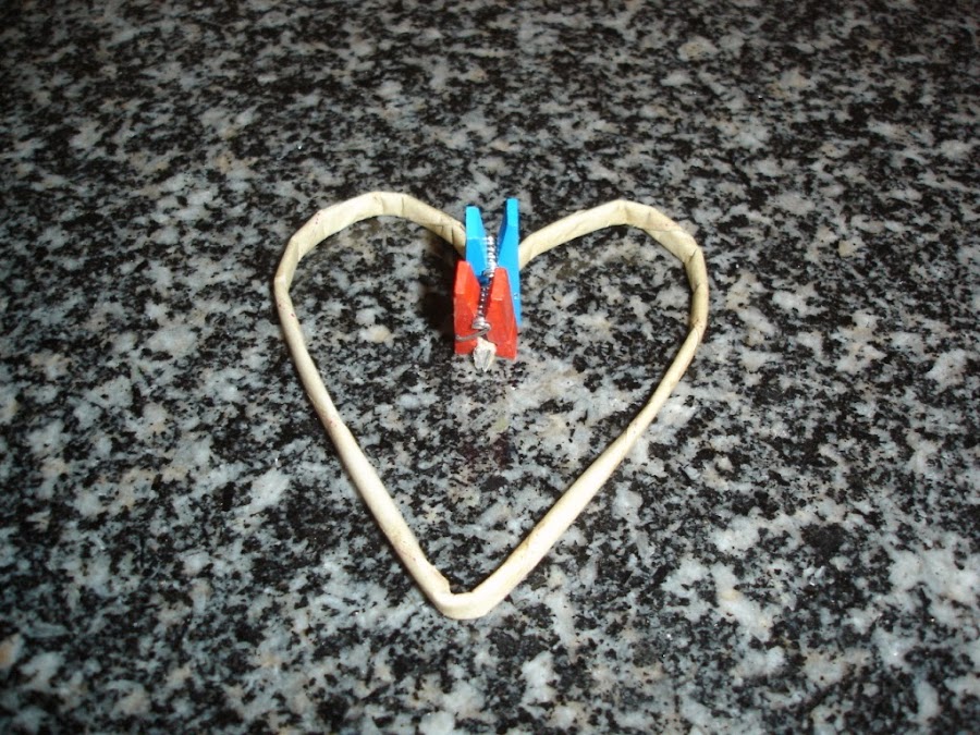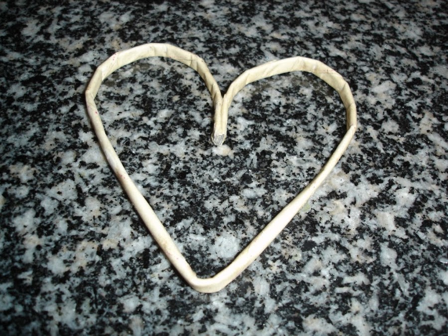Una vez secos le di a uno de ellos la forma de un corazón y como no tenía a mano ningún alambre para meter dentro y hacerlo más resistente lo que hice fue echarle cola blanca un poco aguada y esperar a que secara bien.