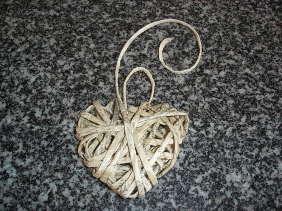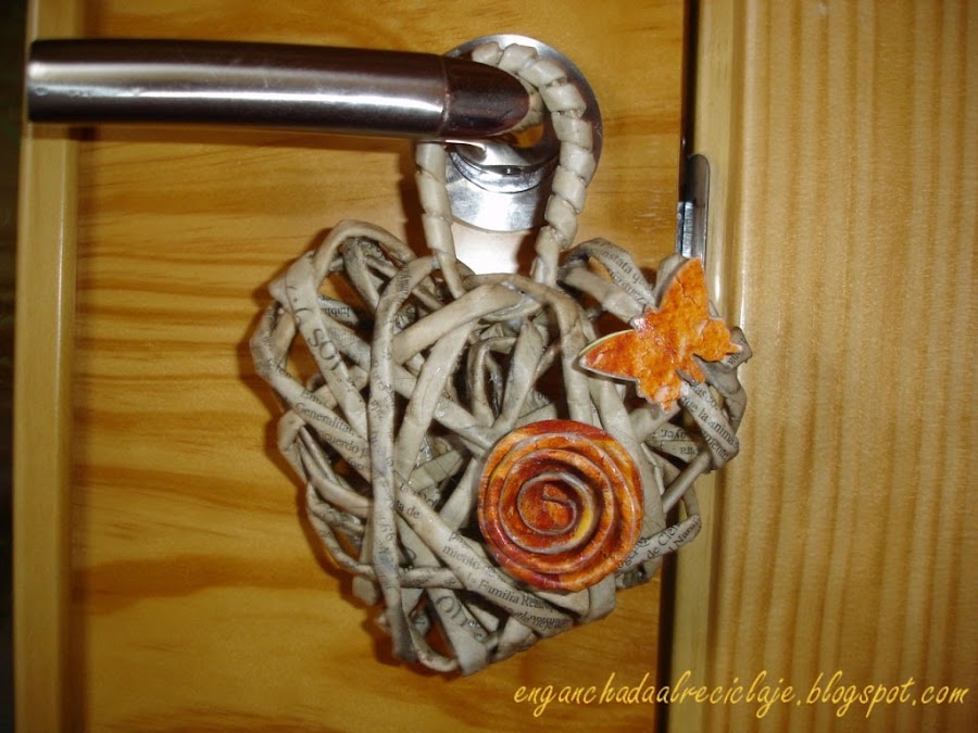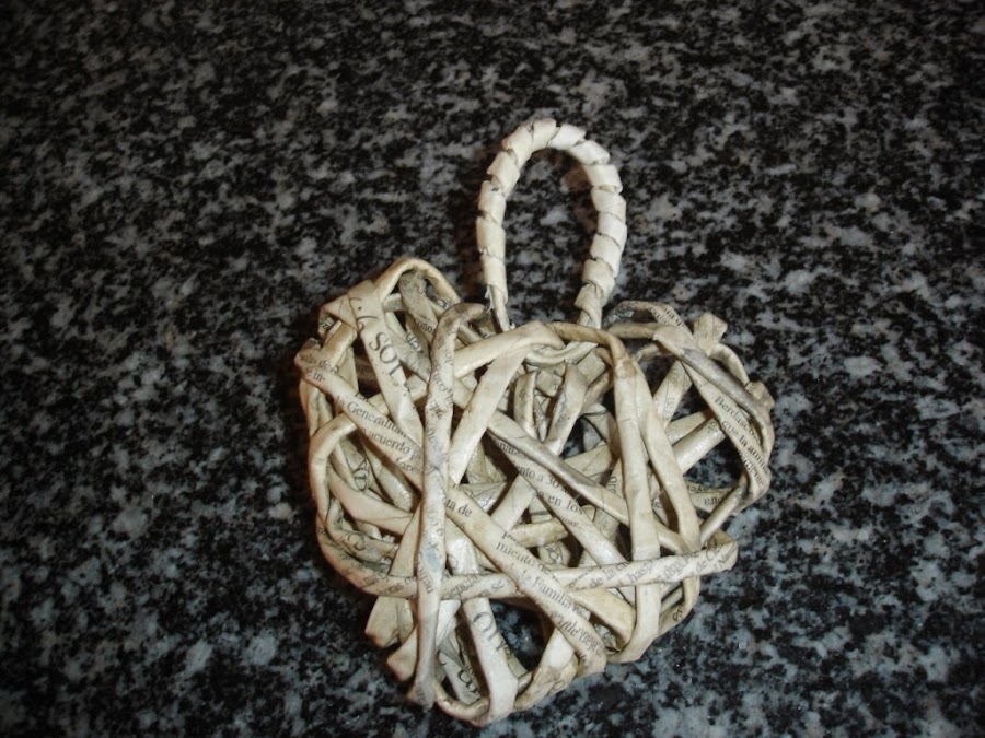Metí otro rollito por la parte de arriba y fui enroscándolo sobre sí mismo para poder colgar el corazón.