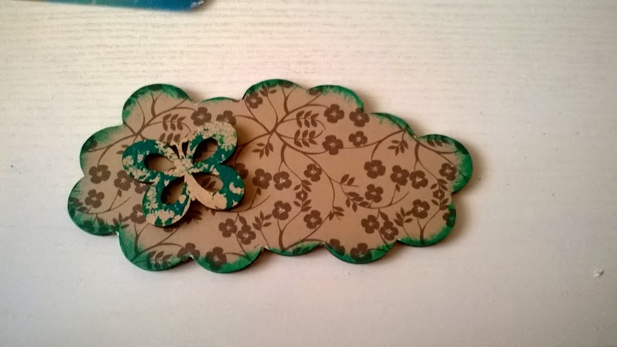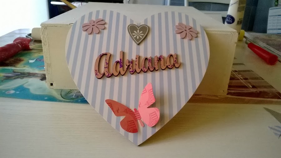 El nombre y la mariposa son de madera, las puse pintura acrílica con una esponja para que quedaran de esta forma.