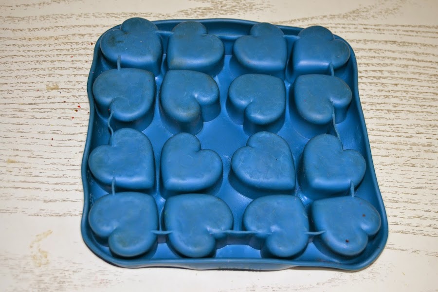 Rebuscando por casa los únicos moldes con formas que encontré fueron las hieleras de Ikea. Arriesgándome a derretirla, elegí esta de corazones. La tenemos repe y la verdad es que el color no me llamaba nada la atención. Así que puestos a estropear algo, mejor estropear algo que no nos termine de convencer.
