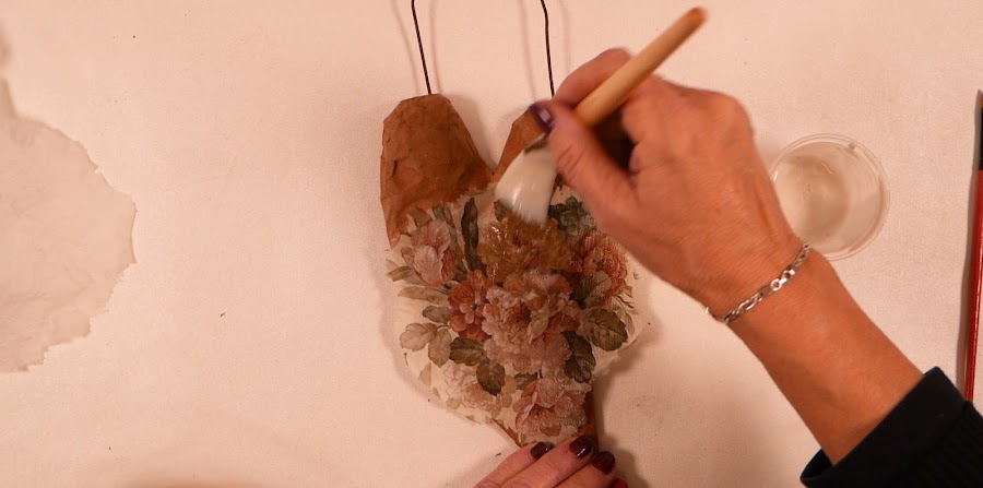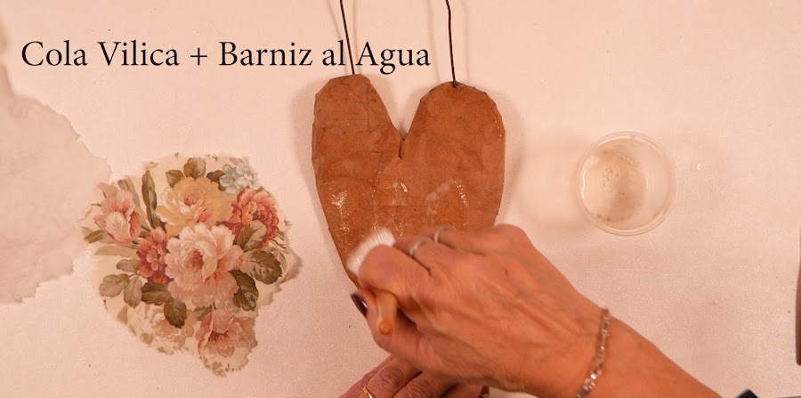 La segunda parte una vez rellenados los corazones es realizarle una cartapesta para darles rigidez.