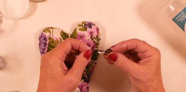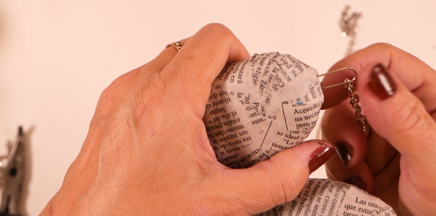 Paso una de éstas partes por el primer eslabón de la cadena y lo incrusto en la parte superior del corazón.