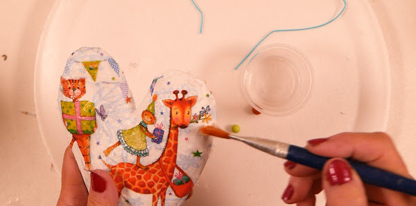 Después se puede barnizar o con el mismo pegamento o barniz acrílico al agua.