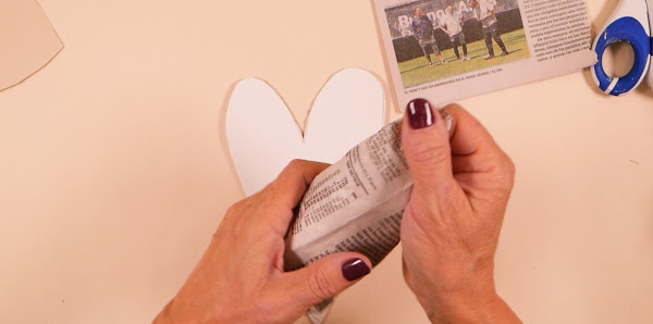 El adorno para éste corazón va a ser con papel de diario, por eso recorté las zonas en donde solo hay parte escrita, sin fotos o títulos grandes.