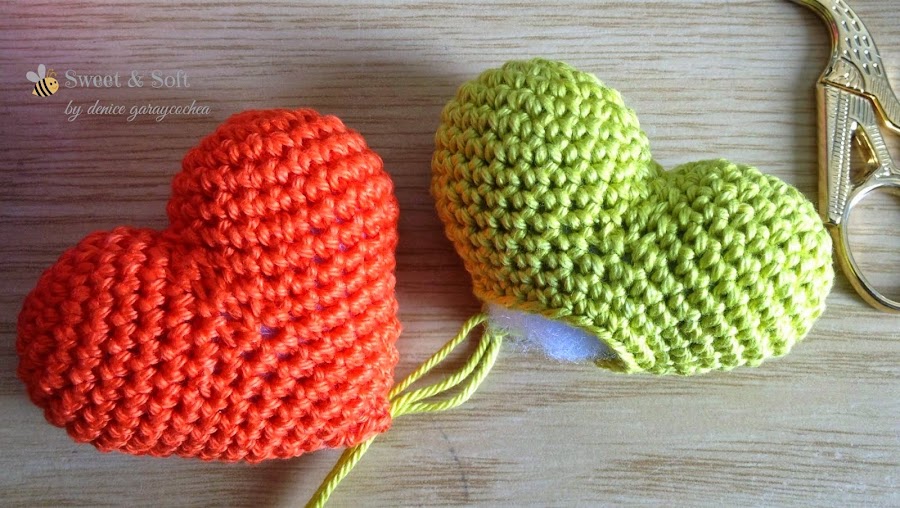 Aunque aún faltan dos meses para San Valentín, podemos ir poniendonos manos a la obra para tenerlos listos para regalar, aunque yo los usaría para diferentes cosas, es que van muy bien para todo, son detalles muy delicados y tiernos para regalar, para adornar... Pueden usar el patrón que Anabelia les deja en su blog, o pueden ver en una entrada anterior, pichando en este link http://dghlamagiadelc ...