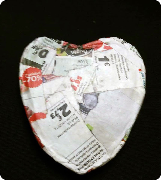 El próximo proyecto será también un corazón , sólo papel y cartón , acrílicos y barniz.100% reciclaje...