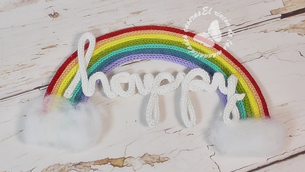 Lo primero que he hecho ha sido un arco iris para decorar una habitación infantil, yo le he colocado la palabra happy pero para personalizarlo podéis poner la palabra del inquilino de la habitación y así me ha quedado, estoy contentísima con el resultado.