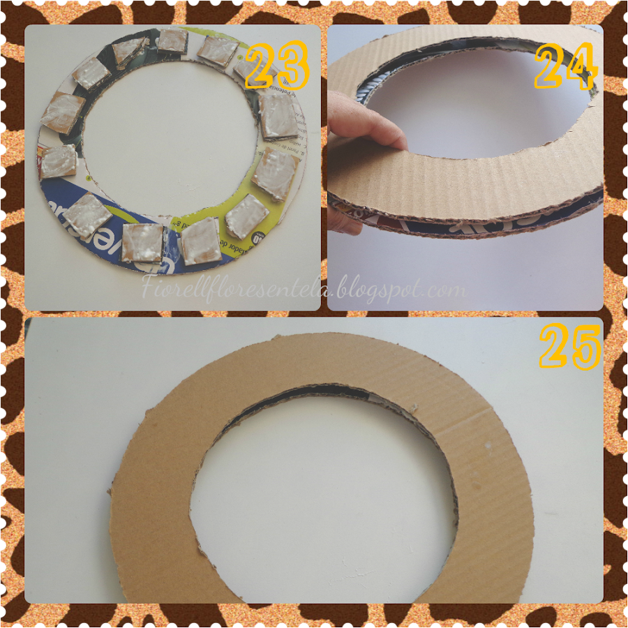 15. con ayuda de dos objetos circulares traza los círculos del tamaño y para dar el ancho de la corona que tu desees. El ancho de la mia es de 6cm.Corta con ayuda del cutter con mucho cuidado.