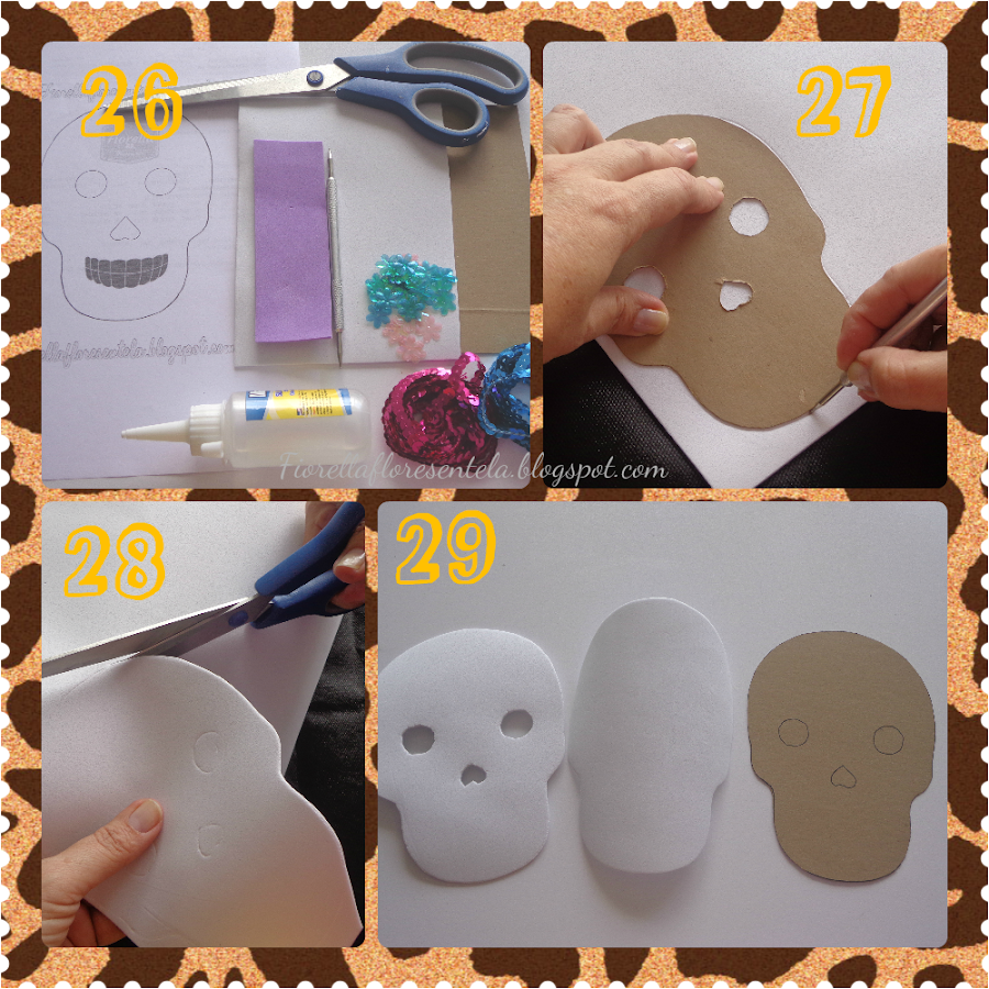 30. Sobre el contorno de calavera de cartón pegar el contorno de calavera en foamy con la silicona liquida.
