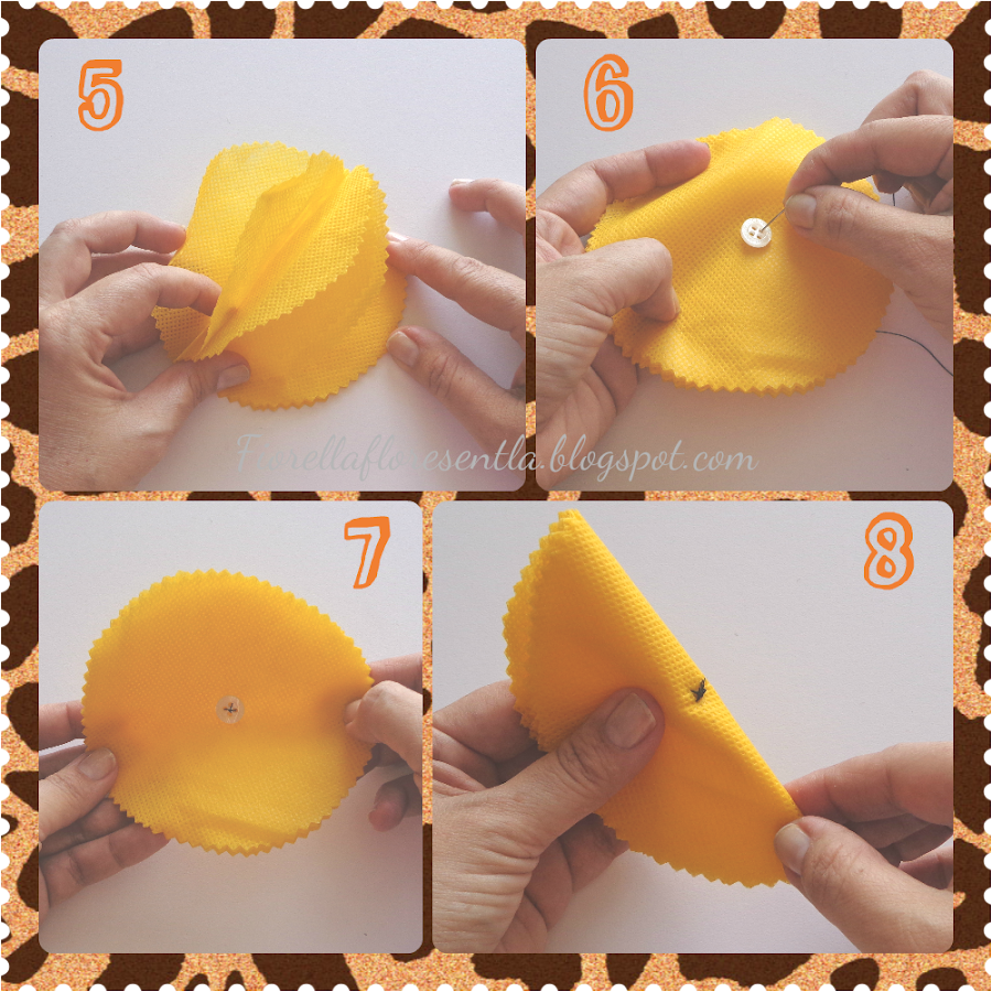 8. Doblamos a la mitad cuidando que el botón permanezca en su posición