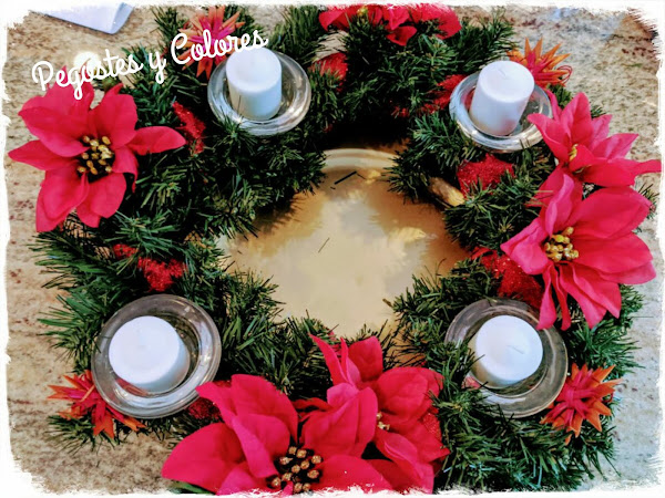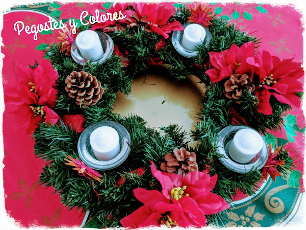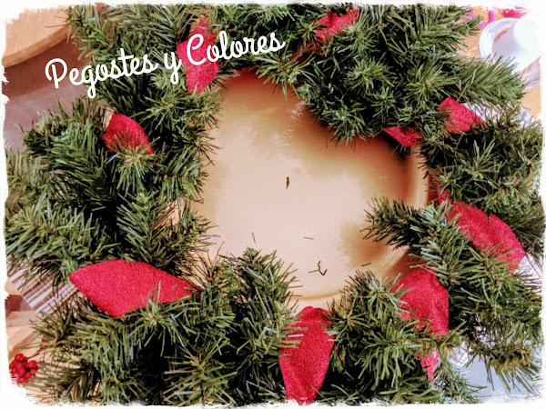 Lola nos propuso un tema muy lindo, Decorar la Mesa en Navidad y por eso les presento mi corona que es tambien centro de mesa. No se a ustedes, pero a mi me encanta cenar a la luz de las velas y mas si es en espera de un tiempo de espera tan especial como la Navidad.
