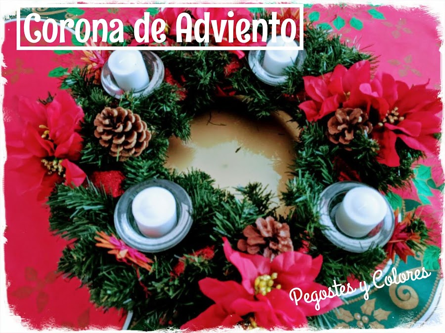 Lamento que no tenia las velas del color que se supone que es, todas las mías son blancas. Según investigue, lo correcto es que la corona tenga 4 velas, que representan los 4 domingos de los que se compone el Tiempo de Adviento. Algunos optan con poner 5, pero no tiene nada de malo poner una quinta en el centro si ustedes así lo quieren.