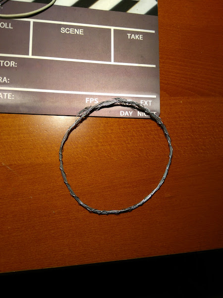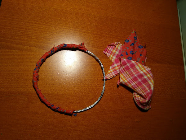 Con los trozos que nos han sobrado de cortar la tela forramos el aro.