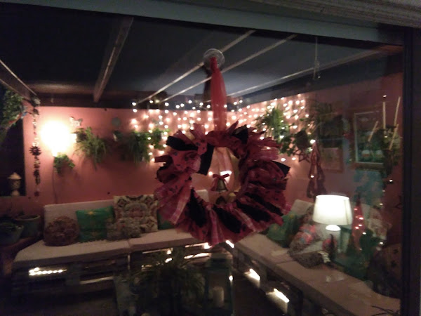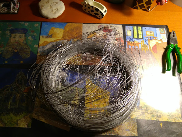 Poco a poco vamos llenando todo el aro con lazos alternando los colores.