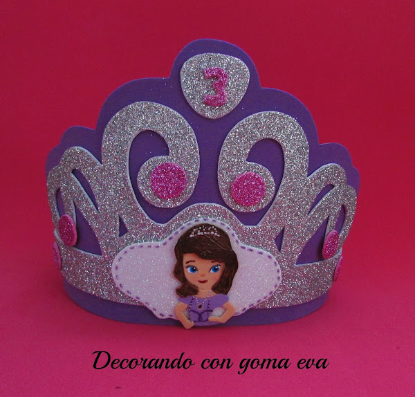 Os enseño otra corona de cumpleaños con la Princesa Sofía, para una niña que va a cumplir 3 añitos. Espero que le guste mucho y se sienta en su día como una princesa.