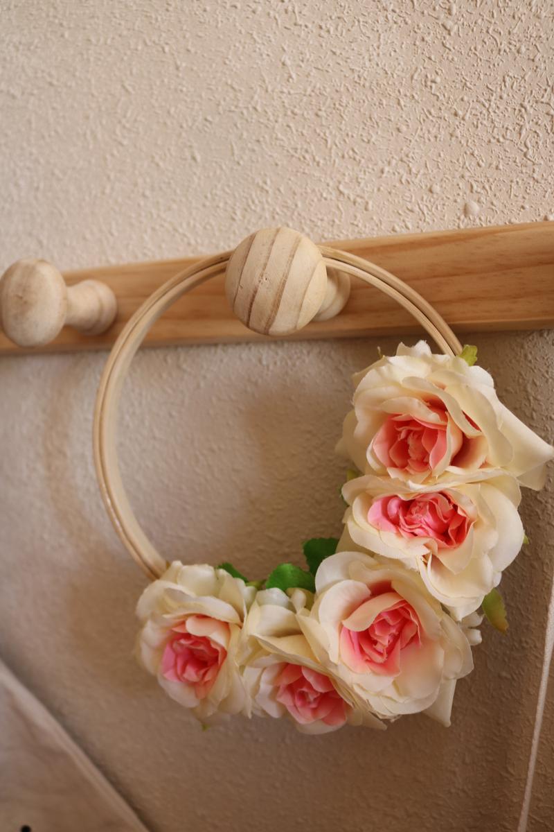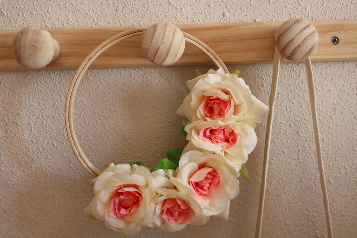 Como su habitación es muy boho las flores que he elegido tienen distintas tonalidades rosa y blanco, que vienen estupendamente con la deco de color madera que predomina en su cuarto.
