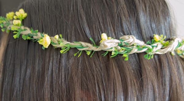 Lo bueno de esta corona de flores es que es súper discreta, fácil de hacer y low cost. Los materiales los encontráis en cualquier chino y es una corona muy versátil que sirve a cualquier cabeza.