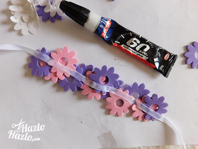 Luego se trata de ir pegando las flores en la cinta de raso como veis en las imágenes.