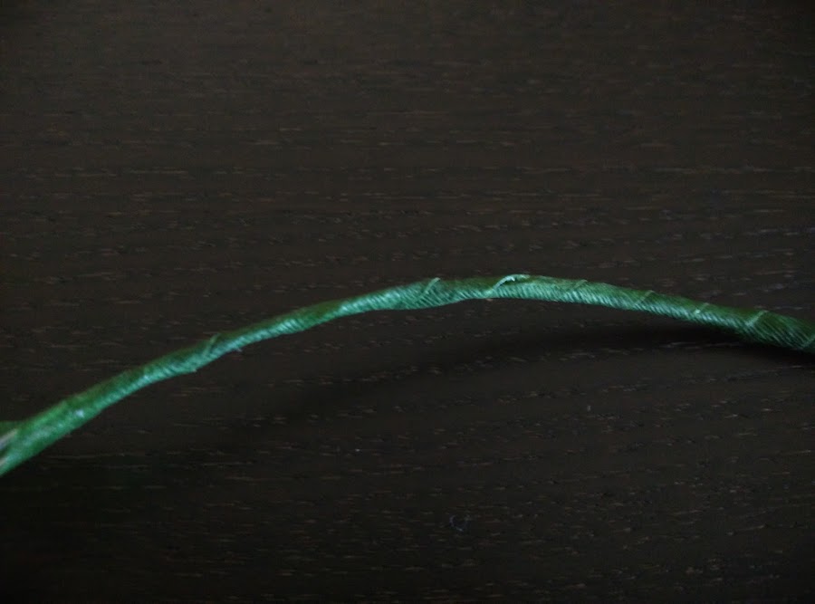 Ahora fórralo con la cinta floral, yo le di un par de vueltas para que se quede más resistente. Aunque esta cinta parece que no pega y es muy floja, según vas dando vueltas se va pegando.