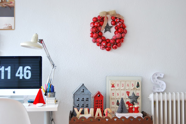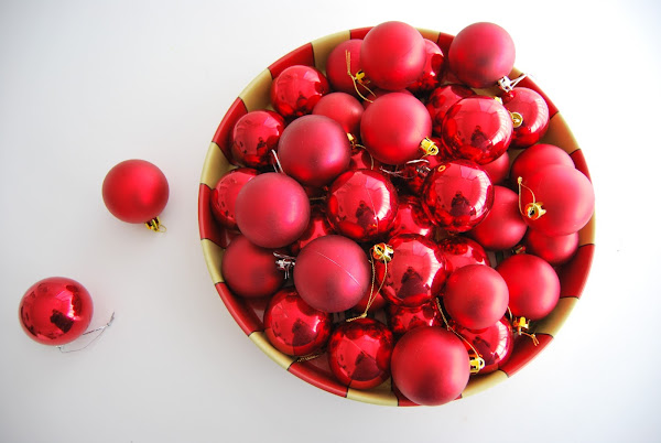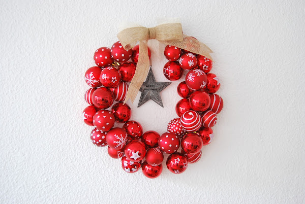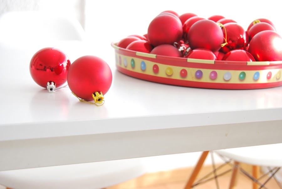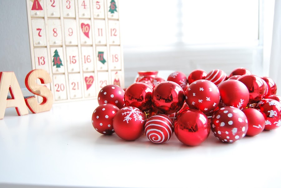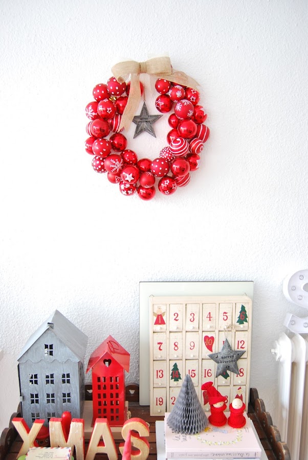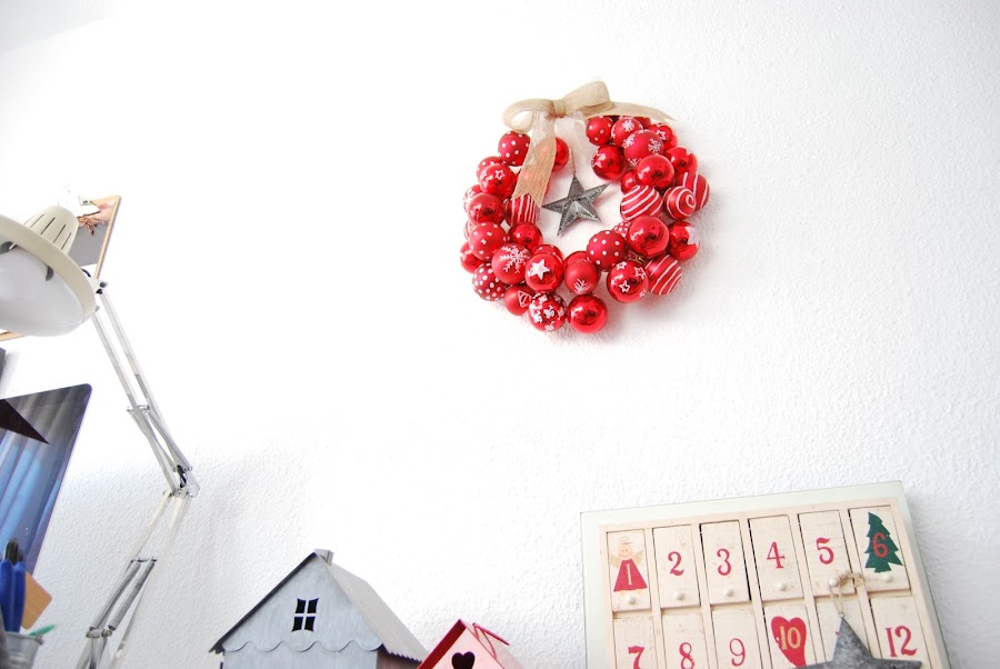 Pero el calendario manda y aprovechamos esta última semana de Noviembre lluvioso para recuperar los adornos de Navidad. Y cual es mi sorpresa al encontrarme con una bolsa llena (literalmente, no cabía una más) de bolas rojas!! y es que el año pasado en el grupo de whatapp, mi amiga Alicia comentó que había encontrado bolas baratísimas y yo en un arranque de locura transitoria le pedí que me comprase unos cuantos miles para hacer una corona, que finalmente fue imposible preparar a tiempo las Navidades pasadas.