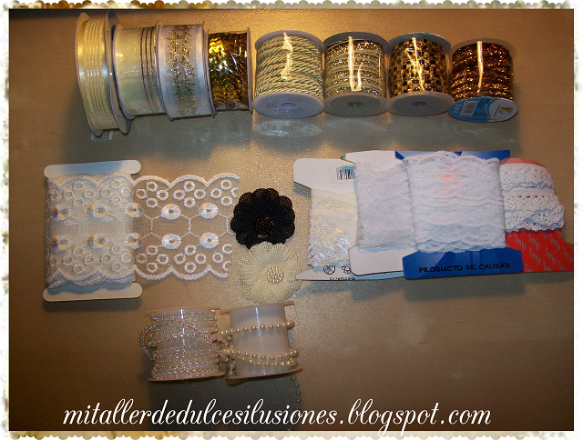 -Encajes,blondas,cintas,lazos,perlas,brillantitos.