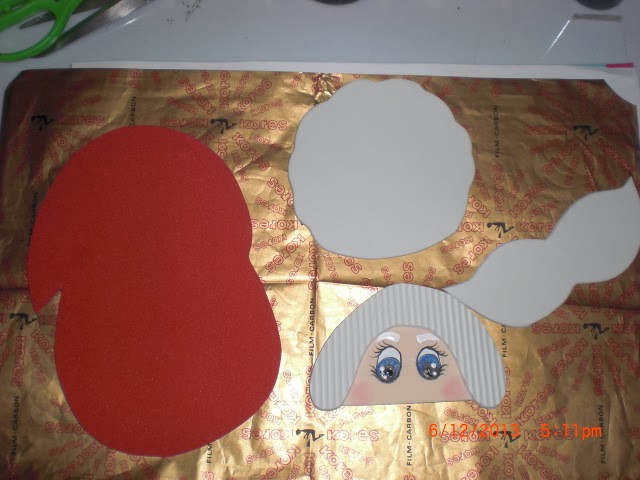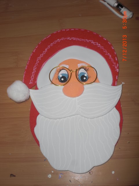 aquí la cara de santa ya pintada y lista para ser pegada en la corona