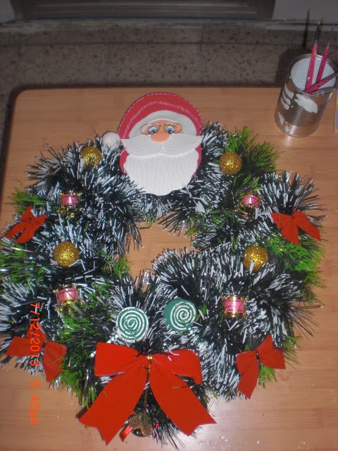 yo realice una cara de santa para ponerla en la parte de arriba y tapar el gancho que habíamos pegado para colgarla