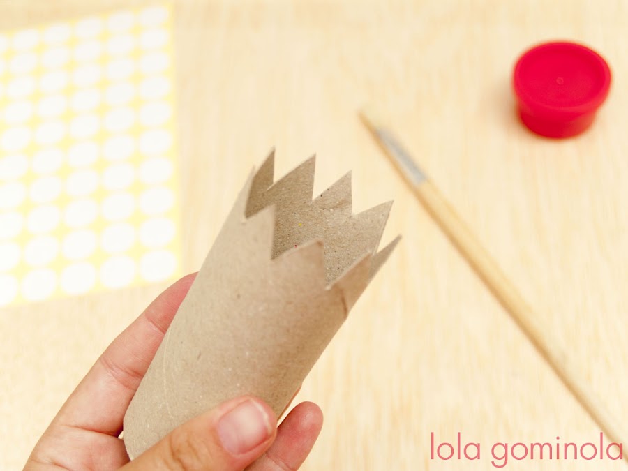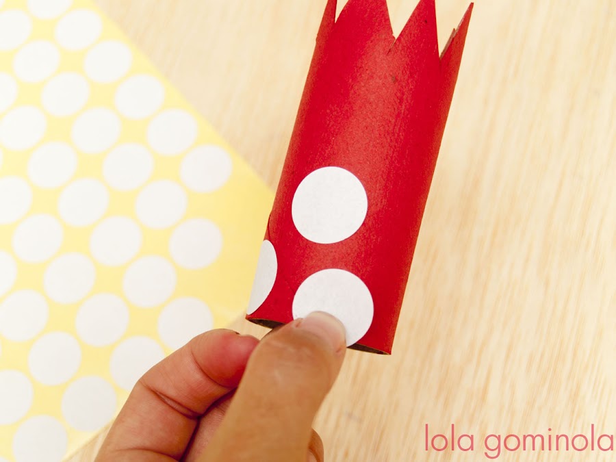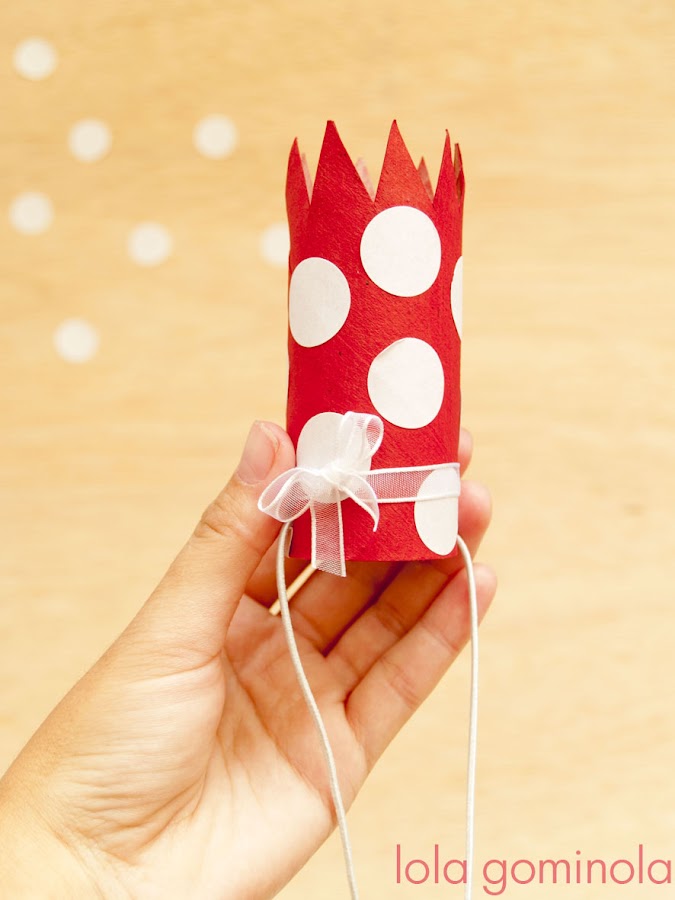 Se trata de hacer una corona con un rollo de papel higiénico, unos gomets, un trozo de goma y un poco de pintura que puede ser la que tengáis a mano, témpera, pintura de dedos... No hacen falta pinturas especiales ni lujos varios.