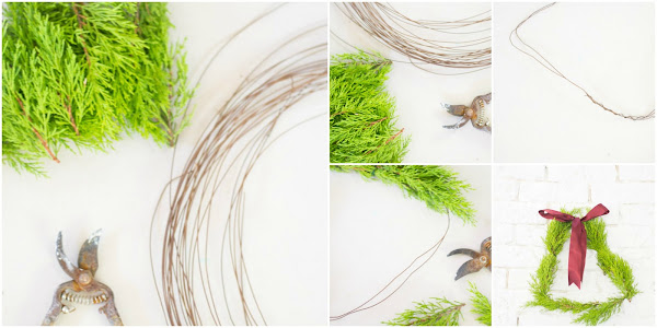 Necesitamos: Alambre grueso y fino, alicates, lazo y ramas verdes.