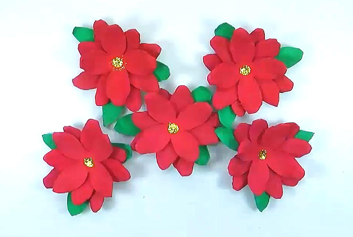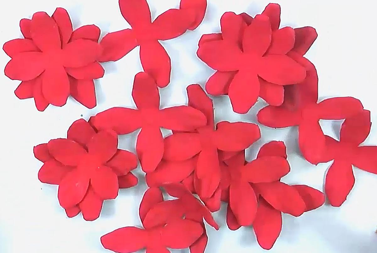 Haz varios pétalos para formar flores y píntalos de rojo.