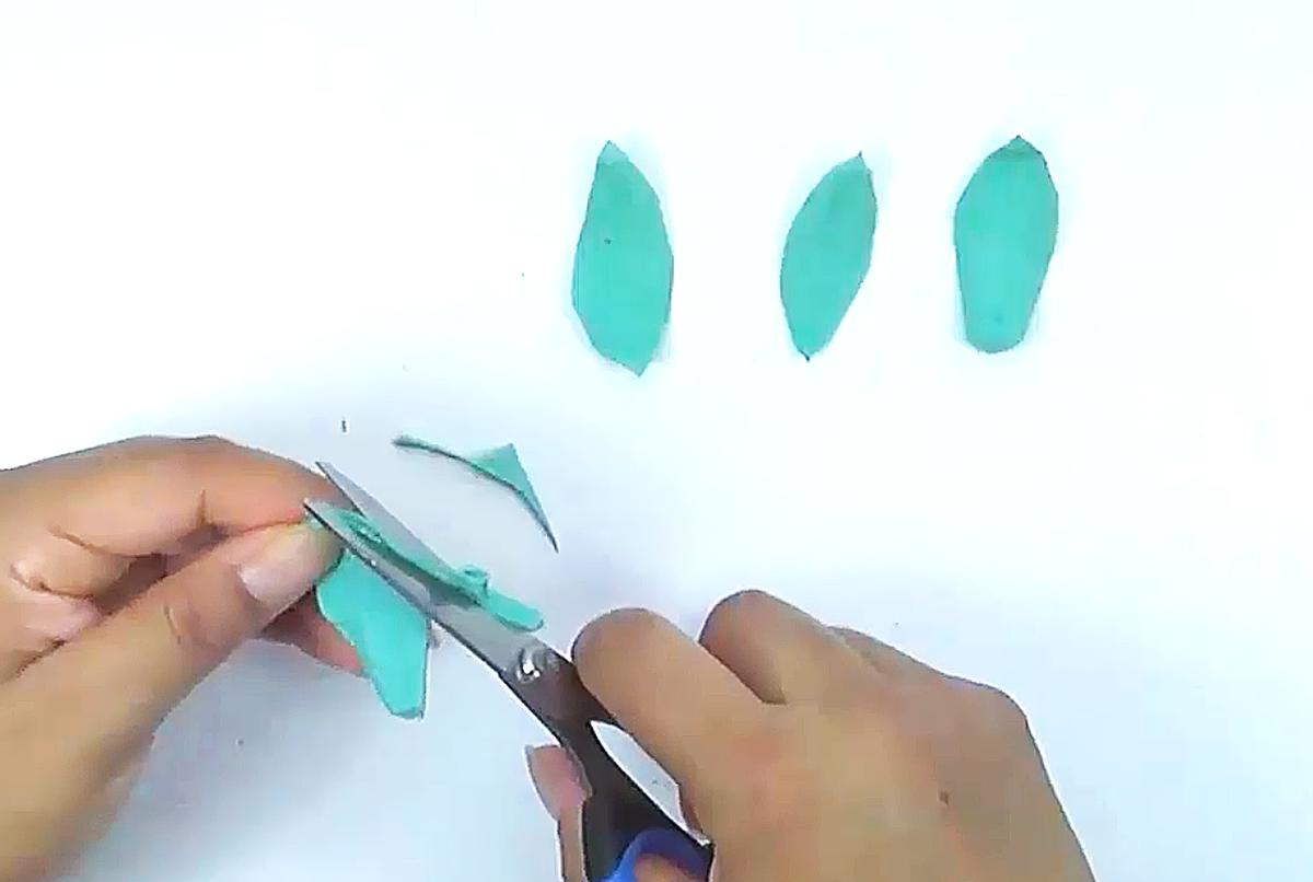 Forma las flores, pegando 3 pétalos uno sobre otro y pega 3 hojas en cada una (hazlo a tu gusto)
