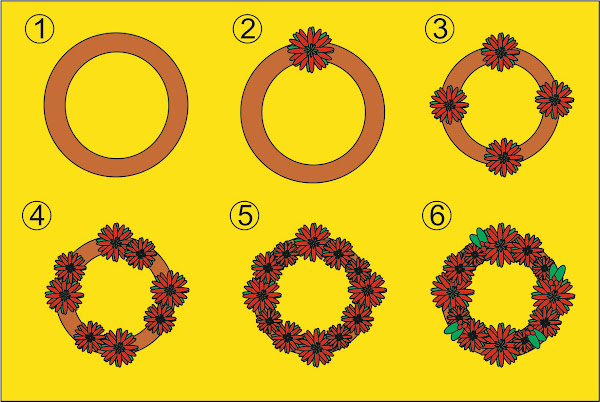 Después de poner la segunda capa de verde ponemos las 4 rojas del mismo modo , poniendo cola en el centro y fijándonos que no se sobrepongan los pétalos (img: 3,4,5 y 6)