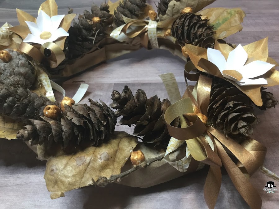 Vamos a ver un tutorial para confeccionar una corona decorativa para la puerta de nuestra casa estas navidades. Para ello utilizaremos un materiales que hemos recogido del suelo de un parque, así como materiales reciclados como cintas de regalo de años anteriores, papel de una bolsa de la compra de un supermercado y garbanzos. Veis que bonito resultado obtenemos con estos materiales?