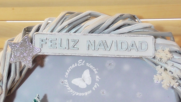 En el fondo he colocado un papel decorado y con unos pinos y pasta flexible tenemos la decoración.