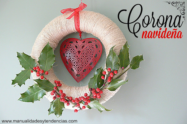 En el siguiente vídeo podéis ver más claramente cómo se enrolla la cuerda alrededor del anillo de porexpan. Si os acordáis, es el tutorial en el que os expliqué cómo hacer una corona con hojas y frutos secos para el otoño.