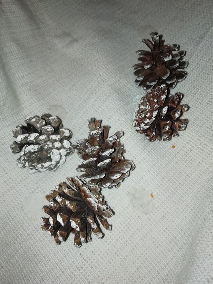 Ya estamos casi terminando. Esto ya va viendo color. Lo siguiente será seleccionar unas pequeñas piñitas que podéis encontrar en cualquier chino y pegarlas entre las hojas y las flores. Quedaría más o menos así.